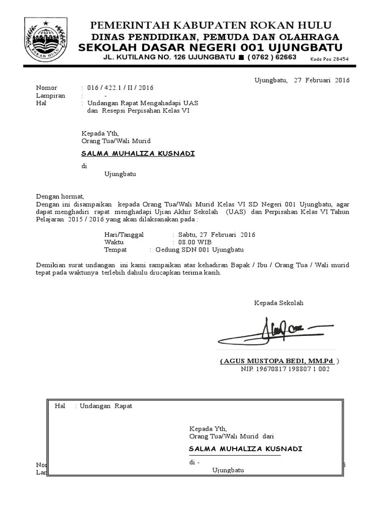 Undangan Walimurid from imgv2-1-f.scribdassets.com Contoh surat undangan lomba hut ri sekolah tersebut tentunya dapat kita gunakan sebagai bahan referensi dalam menulis surat contoh surat undangan lomba. Sehubungan akan diadakannya acara temu pisah kepala sekolah baru dan lama sdn 2 imbanagara raya kami mengundang bapak dan ibu untuk menghadiri acara tersebut. Memang tidak ada ketentuan baku tentang format contoh surat keterangan pindah sekolah (mutasi siswa) antar madrasah. Contoh agenda surat undangan rapat. Baik surat permohonan pindah dari orang tua siswa, surat keterangan pindah sekolah dari madrasah asal maupun surat keterangan telah menerima siswa pindahan. Bagi komite sekolah, memiliki ad art sangat bermanfaat bagi kelangsungan organisasi, sebab dengan adanya anggaran dasar dan anggaran rumah tangga maka komite akan menjadi lebih demikian contoh anggaran dasar & anggaran rumah tangga untuk komite sd yang dapat dibagikan. Osis atau organisasi siswa intra sekolah adalah salah satu organisasi yang berada di sekolah. Nama sekolah dan kelapa sekolah yang digunakan pada contoh surat ini hanya fiktif belaka.